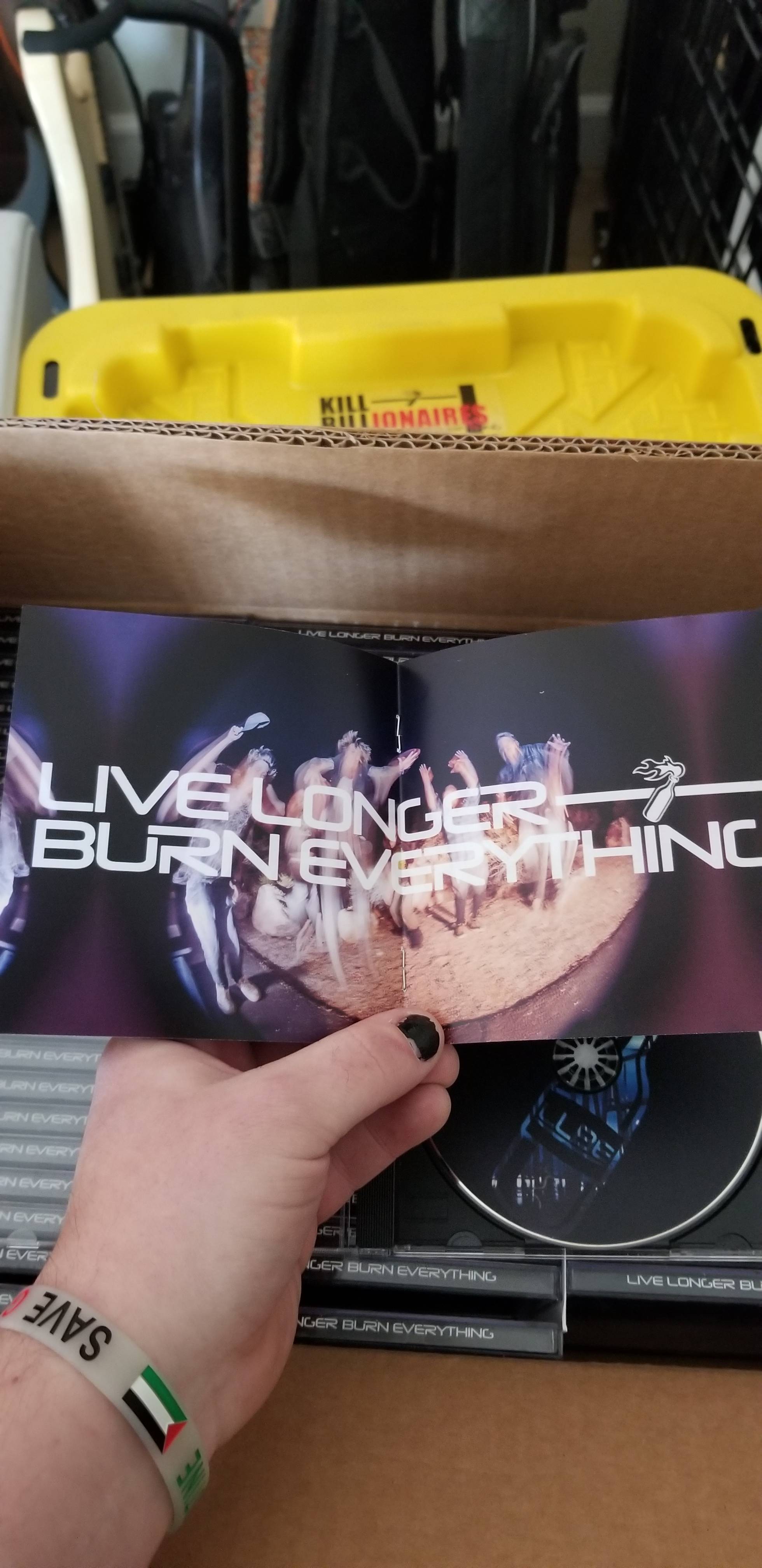 CDs of our first EP, "A Flash of Light and Then..." limited to 100 copies, clear and black jewel case with 12 page lyric booklet, with removable mini poster in the middle.